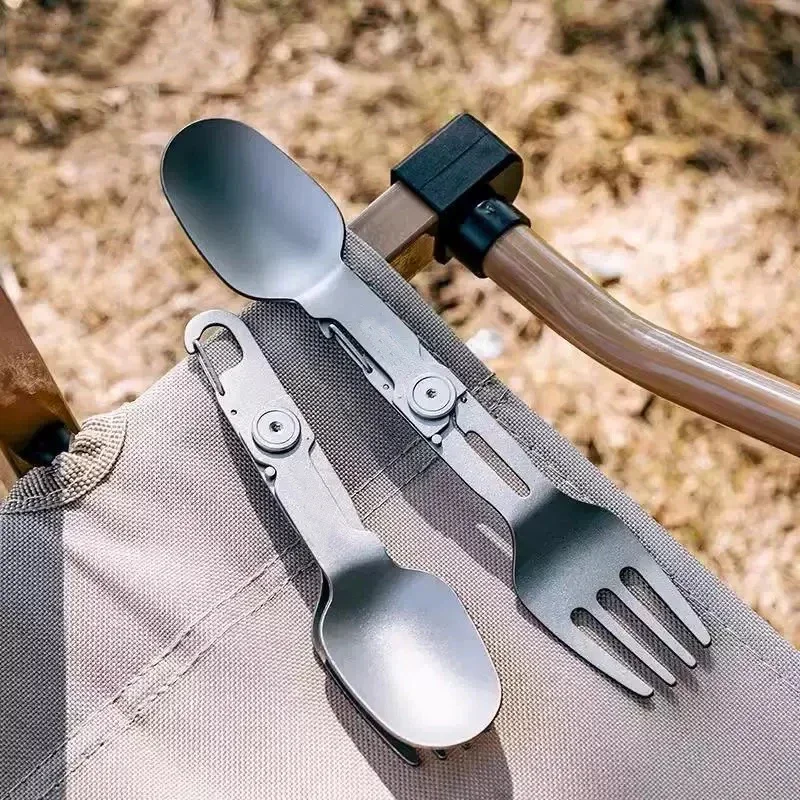 2-in-1 multifunctional Pure Titanium Cutlery with Folding Spoon and Fork Combo,Perfect for Hiking,Camping,or Backpacking Trips