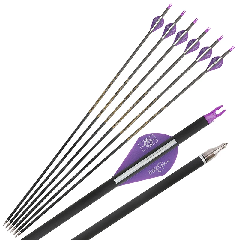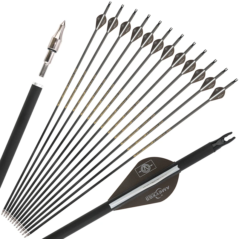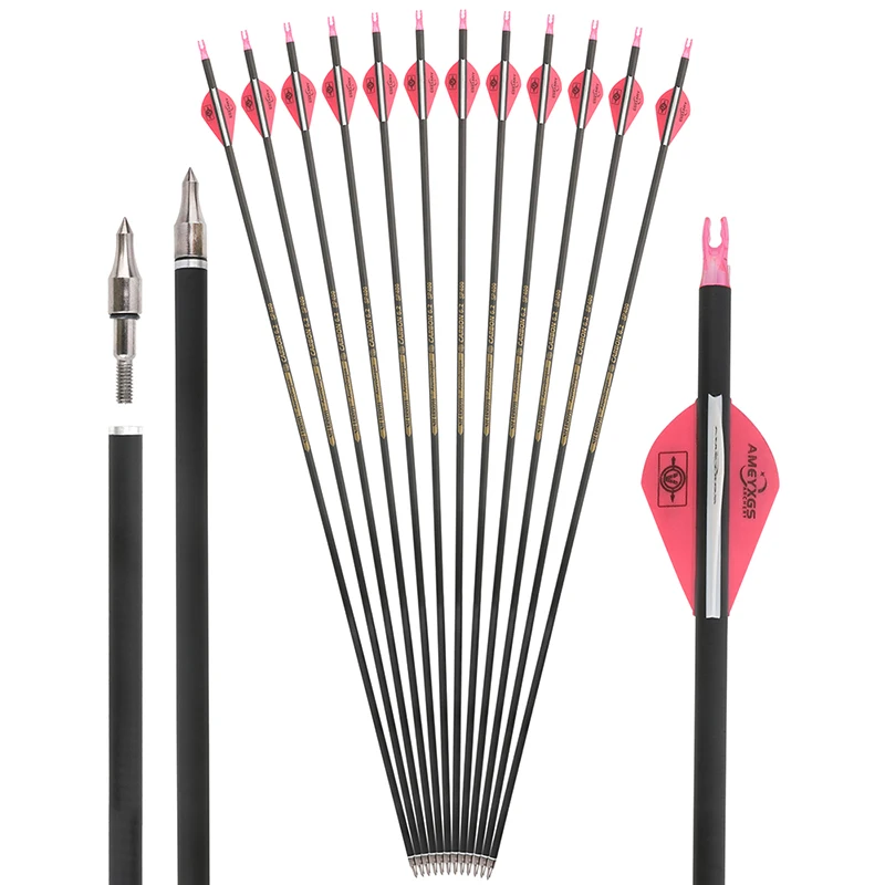 32 Inches Arrow Spine 300/350/400/500/600 Archery Carbon Arrows Pure Carbon Arrows Archery Arrows for Recurve Bow Shooting Arrow Compound Bow Hunting Arrow Target Carbon Arrows 30 Inches Arrow Shaft