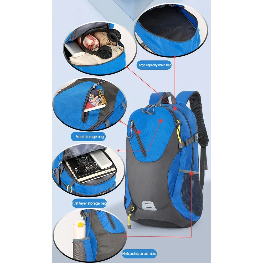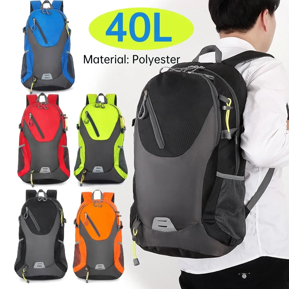 40L Mountaineering Bags Large-capacity Polyester Cycling Knapsack with Reflective Tape Men Women Convenient for Climbing Storage