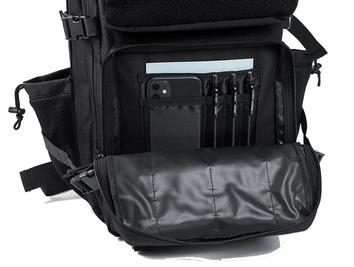 【MULTIPLE COMPARTMENTS】designed with 5 compartments for storing different stuff: two front pockets for small items, two large compartments with built-in zippered pocket and mesh pocket for big and important supplies, dedicated laptop/device compartment (17''), a hidden back pocket for frequently-used items, backpack opens flat to 180 degrees for easy packing/unpacking.Tactical backpack has bottle holder on both side of backpack, can fit for 750ml water bottle, umbrellas or tools.