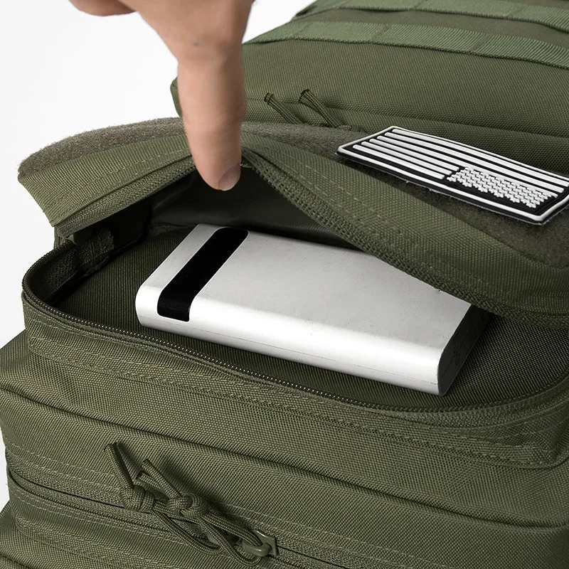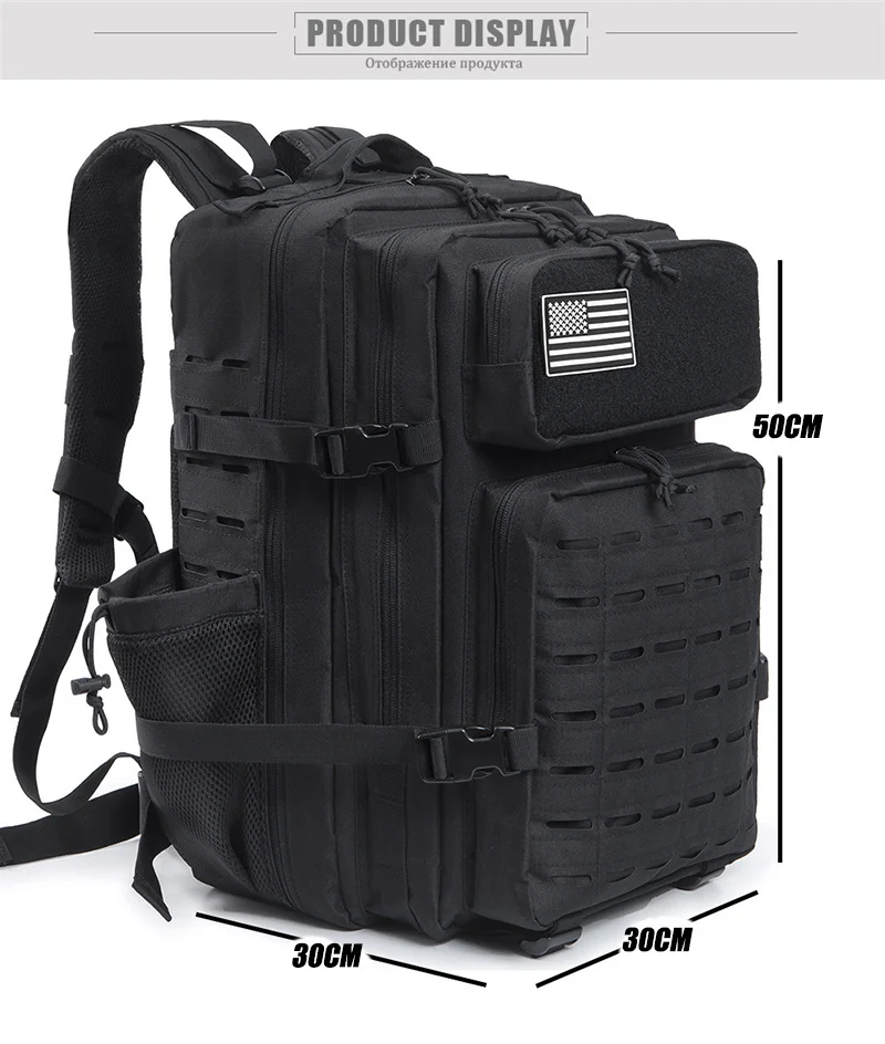 【THE SPACE YOU NEED】This Tactical backpack size appro:50cm x 30 cm x 30 cm dimensions and appropriately sized 45L capacity, this pack has room for all of your essential gear. Large multi-layer interior storage compartments can accommodate a lot of outdoor equipment, and also meet your daily travel needs. large area of Velcro, make the backpack different with other backpacks, you can paste any patch you like. .one US flag patch for gift(can be removed).