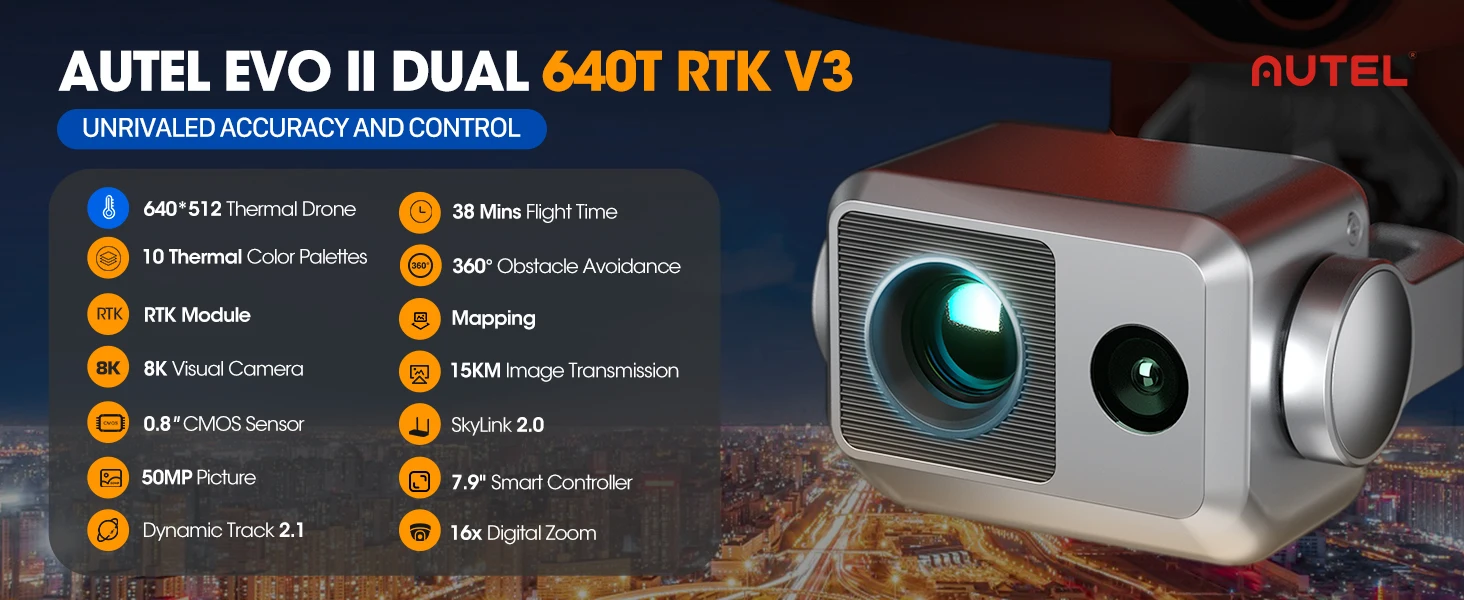 Autel Robotics EVO II Dual 640T RTK V3 Thermal Drone Real-time Centimeter-Level Positioning Remote ID S-ony 1'' 6K/30fps HDR