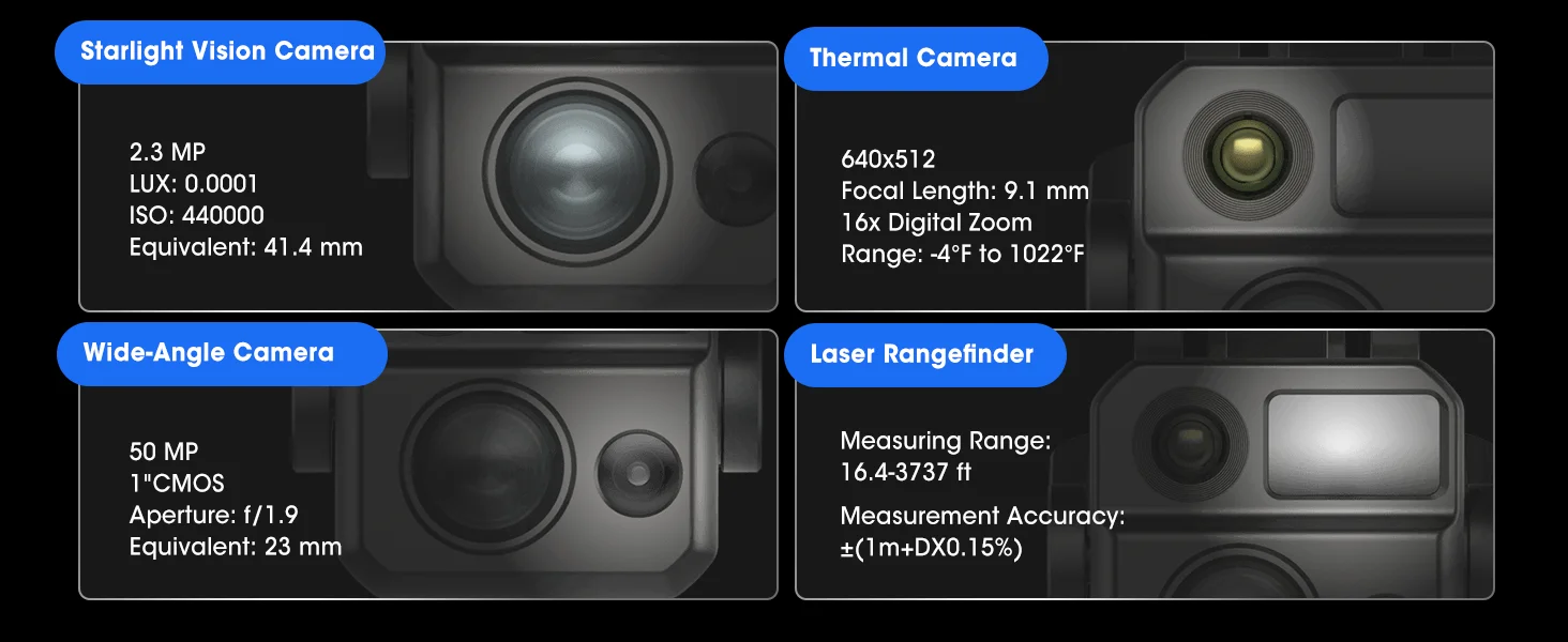 Autel Autonomy autonomous flight technology is used to achieve global path planning, 3D scene reconstruction, autonomous obstacle avoidance and return in complex environments; high-precision visual navigation capability enables it to obtain high-precision, low-latency navigation positioning for stable and reliable flight in complex environments such as strong signal interference, signal obstruction, and weak signal; the industry's first A-Mesh networking technology supports free networking of multiple devices to achieve integrated air-ground network coverage; "binocular fisheye vision + millimeter wave radar" multi-source sensor fusion perception technology has 720° all-round perception and obstacle avoidance capabilities; EVO Max4N integrates super starlight-level night vision cameras, wide-angle cameras, infrared cameras and laser rangefinders, which can easily realize light source detection 5 kilometers away in a dark environment, detection through glass, etc., efficiently empowering public safety, emergency management and other fields, and setting a new benchmark for industry application drones.