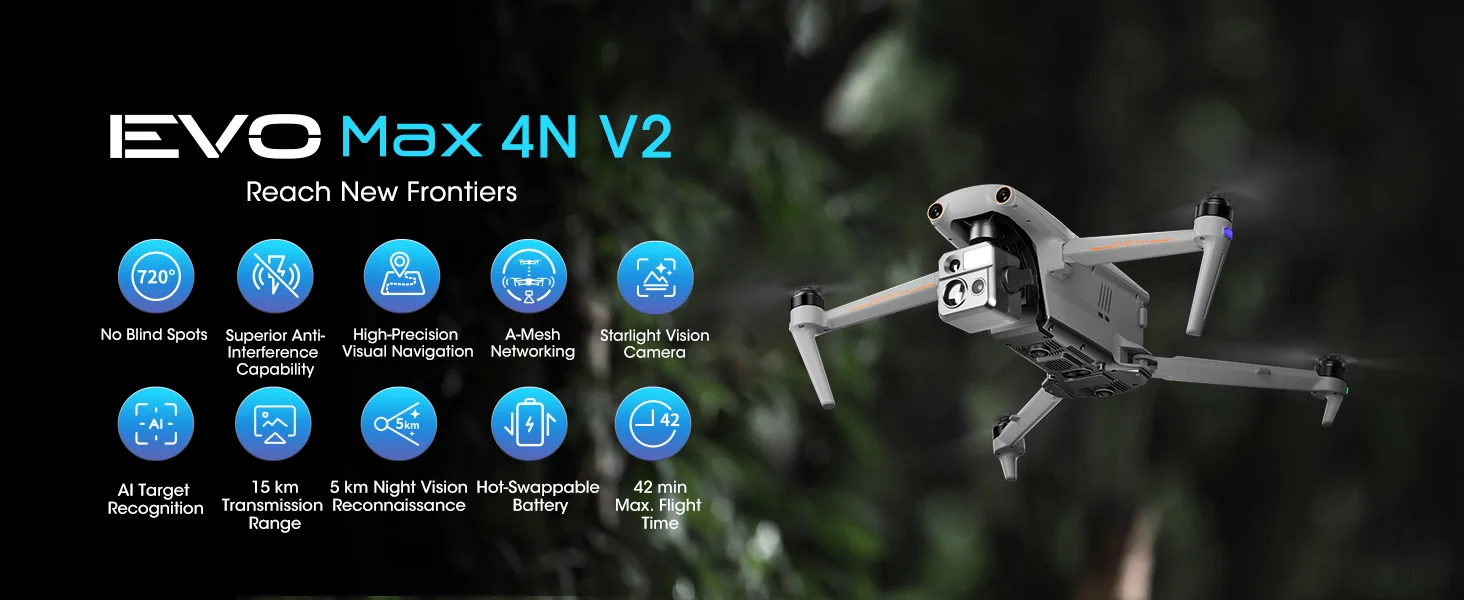 Autel Robotics EVO MAX 4N V2 AI Professional Drone 1.69" CMOS Starlight Night-Vision/ Wide/ Thermal/ L~aser 4 Cameras in One UAV