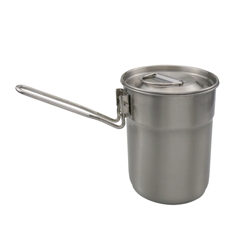 Camping Cup Stainless Steel Coffee Mug Portable Cooking Pot 1L with Lid Folding Handle for Camping Picnic Hiking