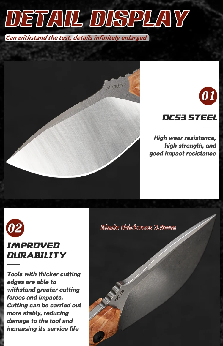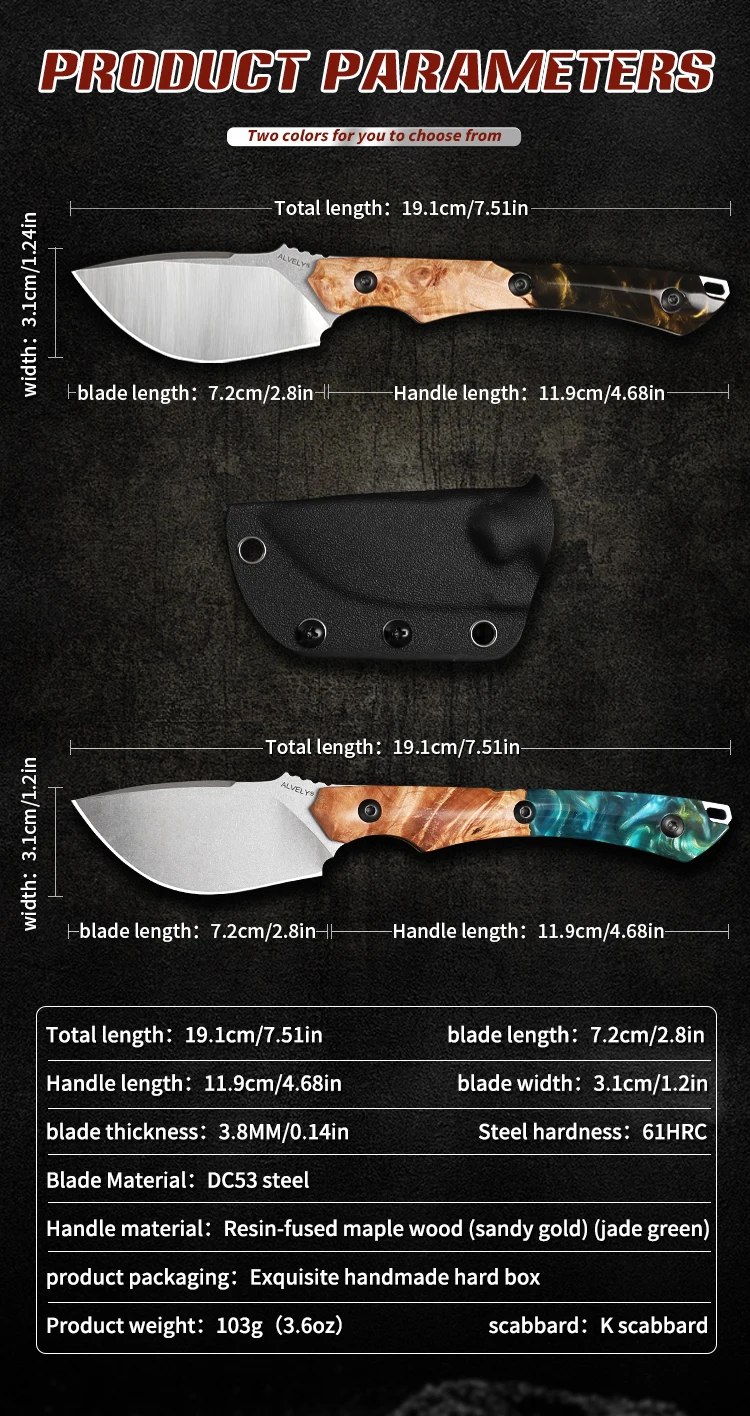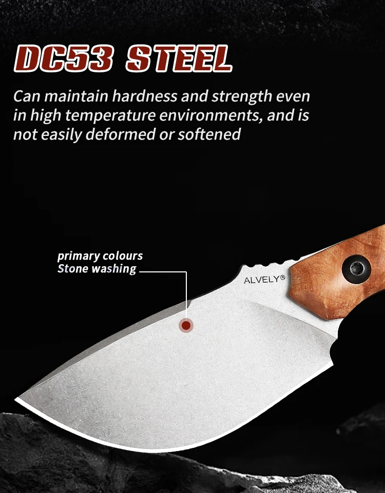 DC53 Steel Fixed Blade Knife, Outdoor Hunting Fixed Blade Knife, Suitable for Mountaineering, Camping Survival, and Hiking
