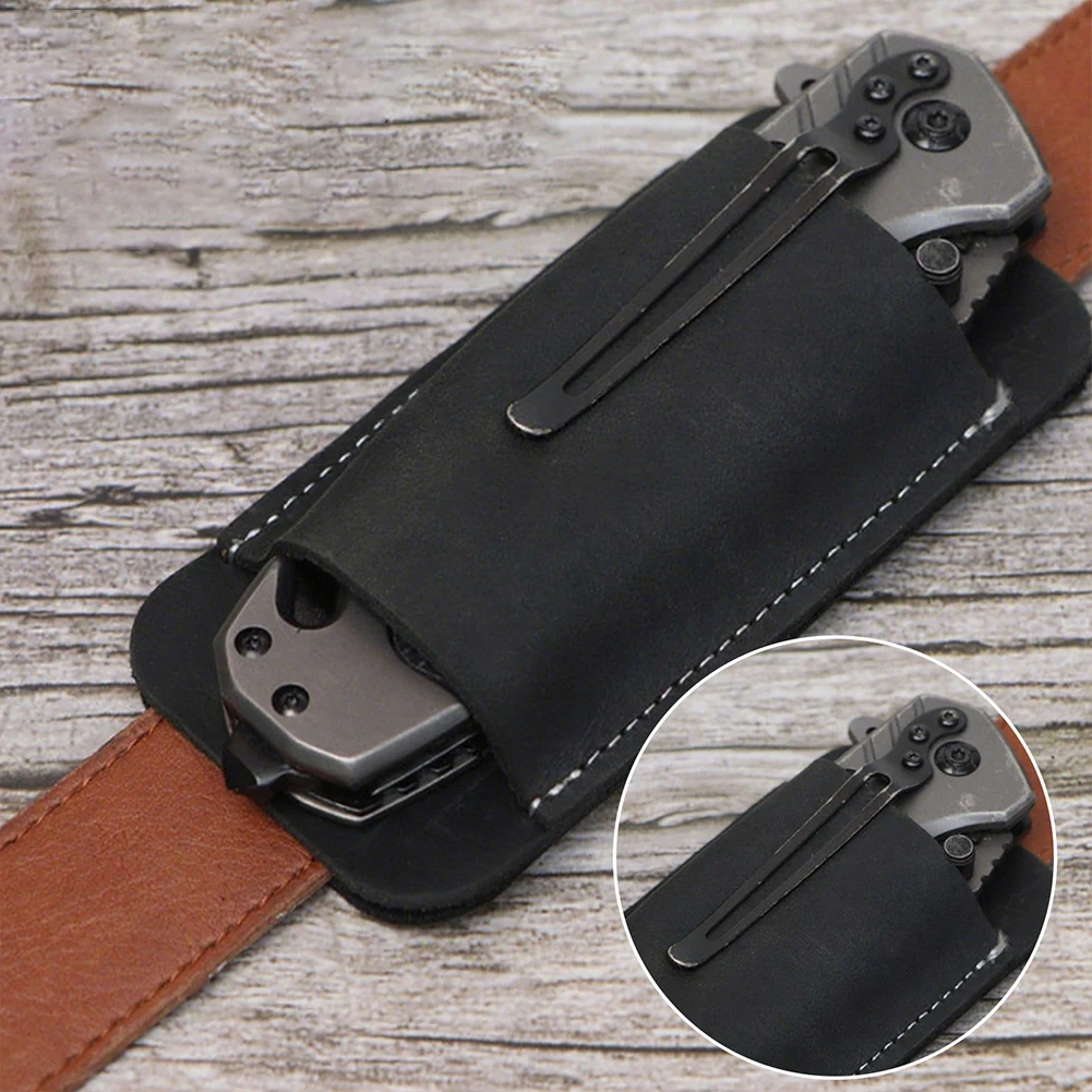 EDC Leather Knife Sheath Quick Access To The Knife Pocket Organizer Compact Draw Knifes Carrier Suitable for Most Folding Knives