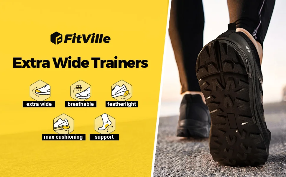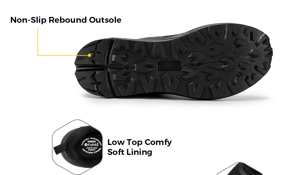 【Sturdy Traction Outsole】 FitVille's special sole keeps you steady, even on tricky surfaces. Enjoy solid grip wherever you roam, making every trail run safe and confident.