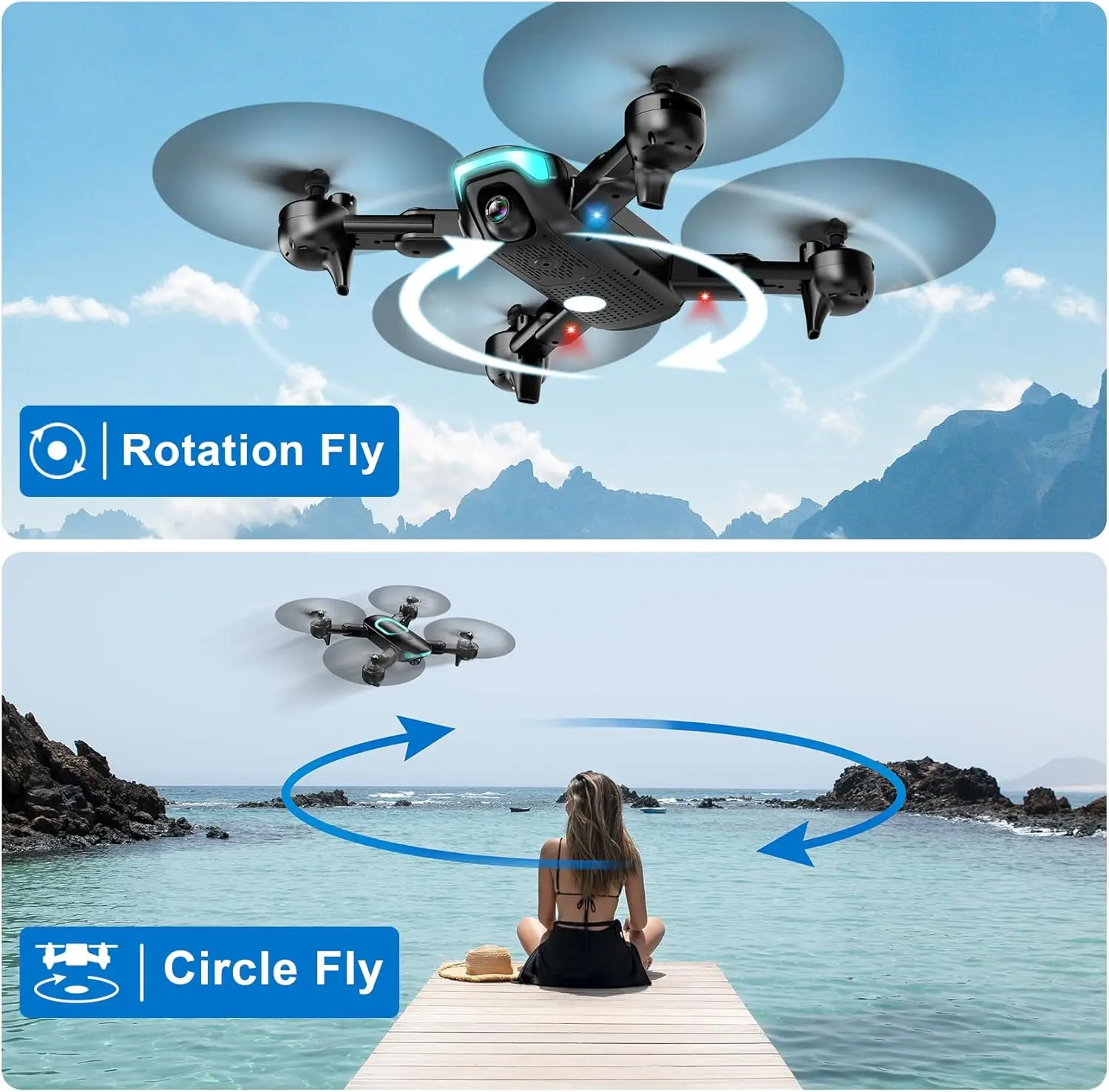 Discover the perfect drone for beginners and enthusiasts alike! This foldable drone combines advanced features with user-friendly design to elevate your flying experience. Key highlights include: 1. **High-Quality Camera**: Capture stunning aerial photos and videos with the built-in 1080P HD camera. Enjoy clear, detailed footage from above. 2. **Easy to Use**: Designed for beginners, this drone features one-key start and landing, making it simple to operate right out of the box. 3. **Stable Flight Performance**: The upgrade altitude hold function ensures steady hovering at a fixed height, allowing you to focus on capturing great shots without worrying about drift. 4. **Interactive Features**: Take hands-free selfies using gesture control or set custom flight paths with waypoint fly mode for creative aerial photography. 5. **Fun Flying Modes**: Experience exciting maneuvers like 3D flips and circle fly patterns. Choose from three speed modes to match your skill level and preferences. 6. **Portable Design**: The foldable structure makes it easy to carry and store, ideal for travel or outdoor adventures. 7. **Built-in Lights**: Enhanced visibility during low-light conditions adds safety and style to your flights. This drone is crafted to provide reliable performance and endless fun, whether you're learning the basics or exploring advanced techniques.