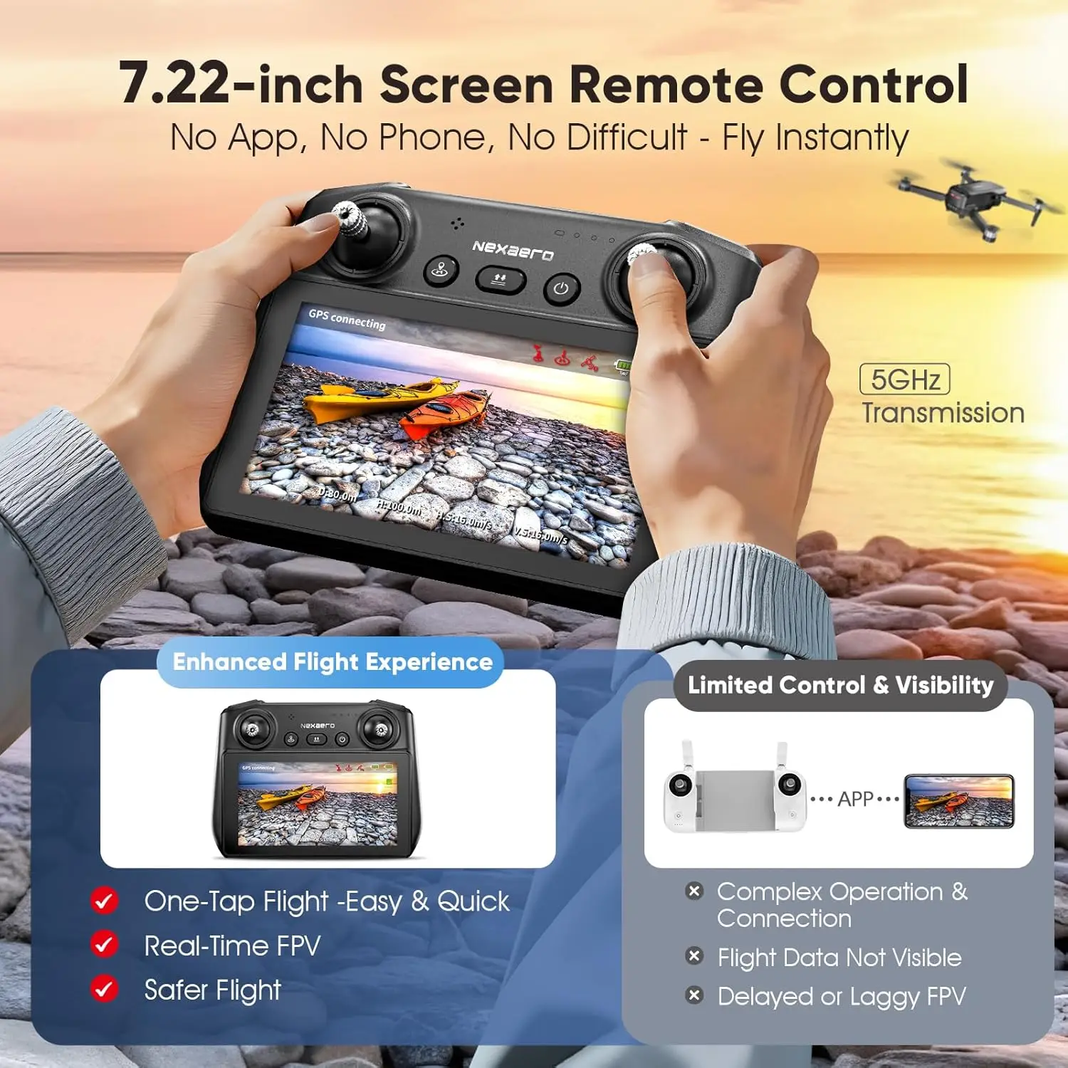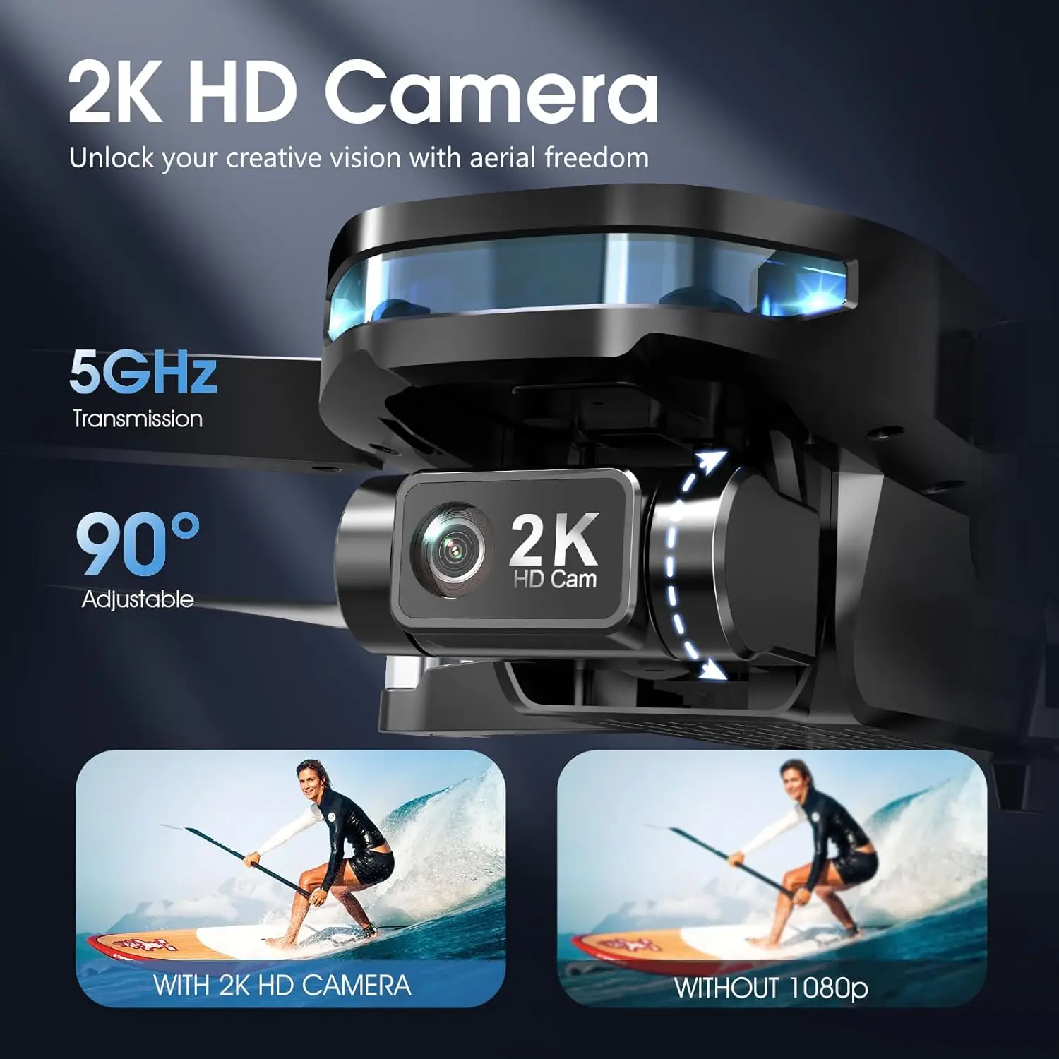 GPS Drone with EIS 2K Camera, 7.22" Screen, 64 Min Flight, Long Range, Foldable for Beginners