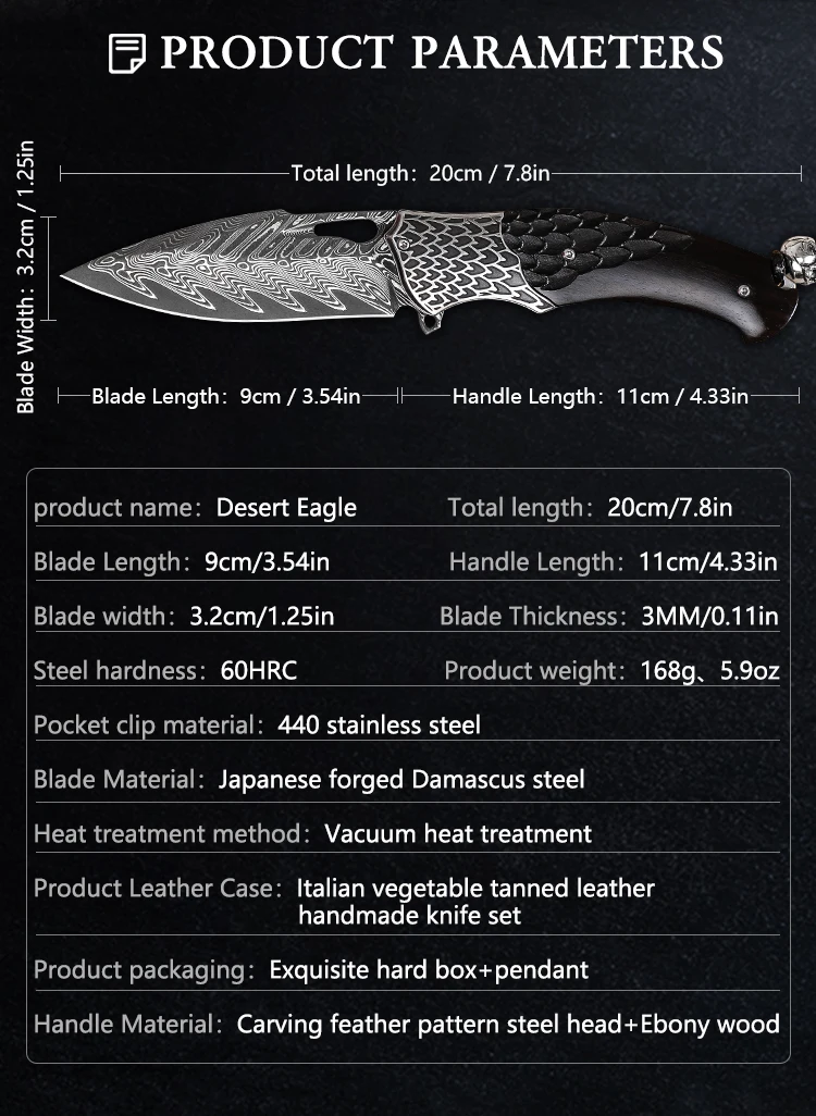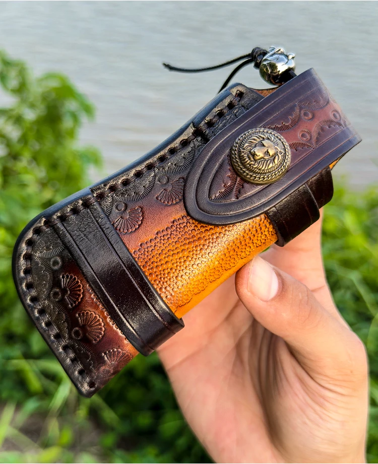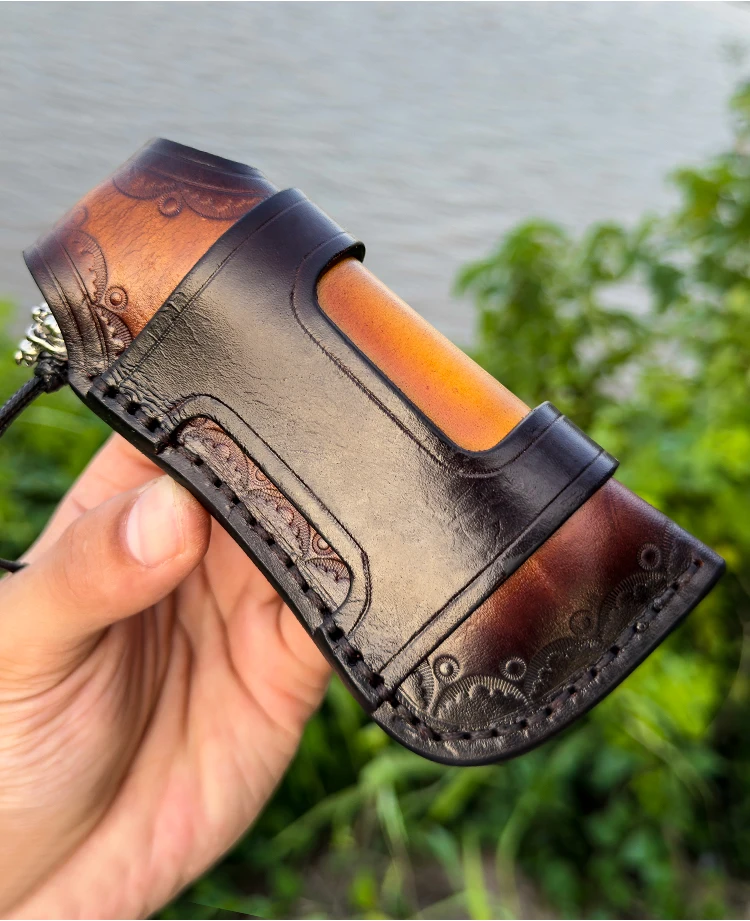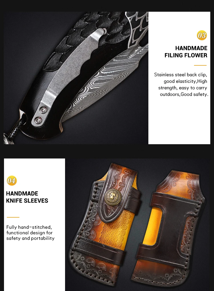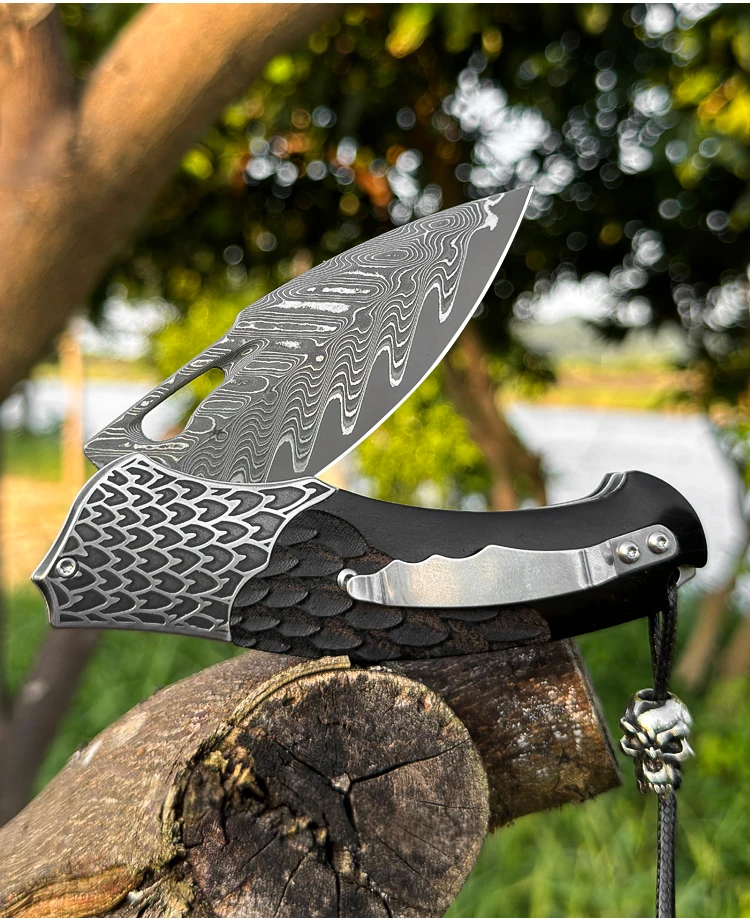 High Quality Handmade Damascus Steel Pocket Knife with Sheath, Men's EDC Folding Knife, Outdoor Adventure Hunting Knife