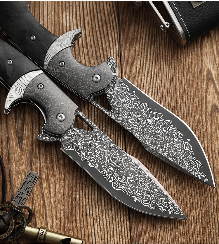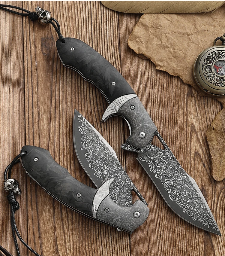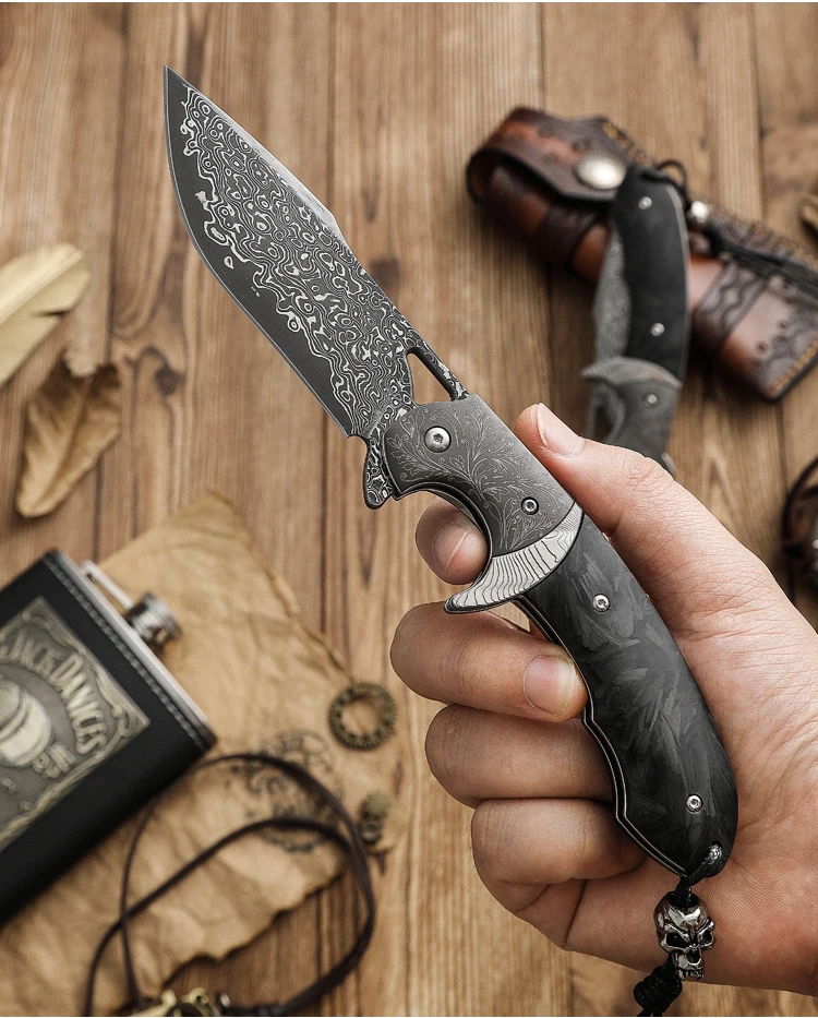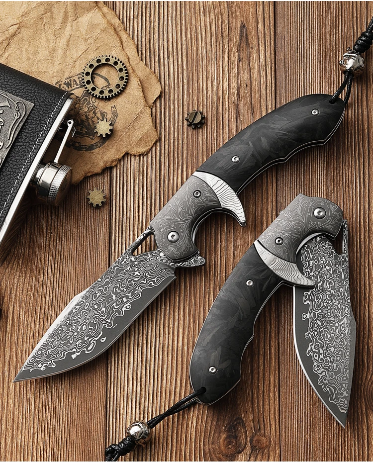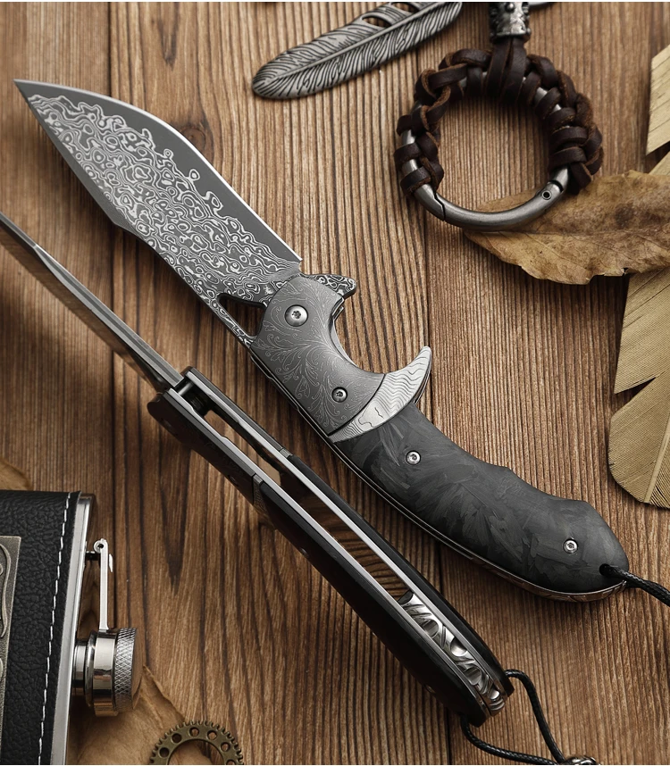 High Quality Men's Folding Pocket Knife, Damascus Steel Pocket Knife with Sheath, EDC Camping Adventure, Hunting Survival Knife