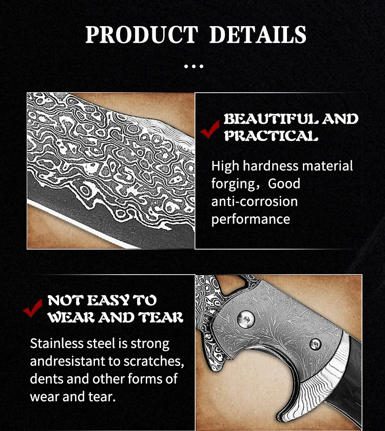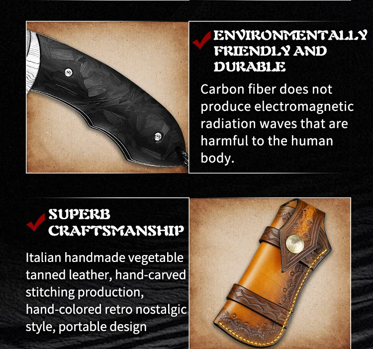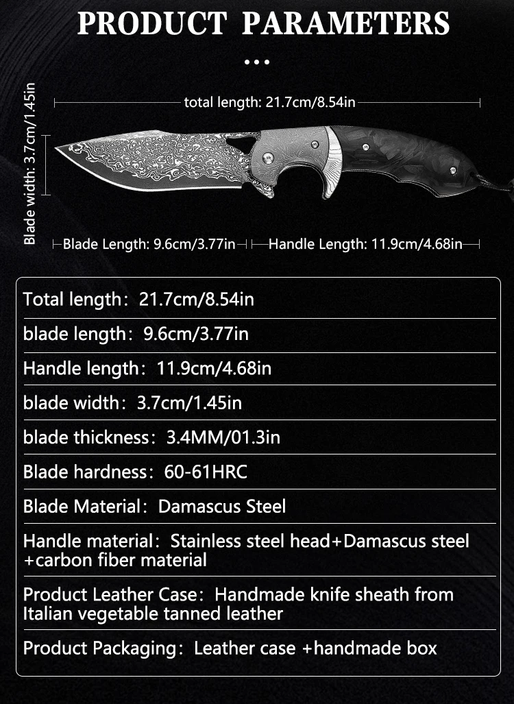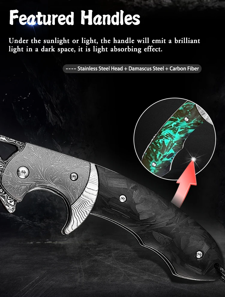 Handlematerial:Stainlesssteelhead+Damascussteel+carbonfibermaterial