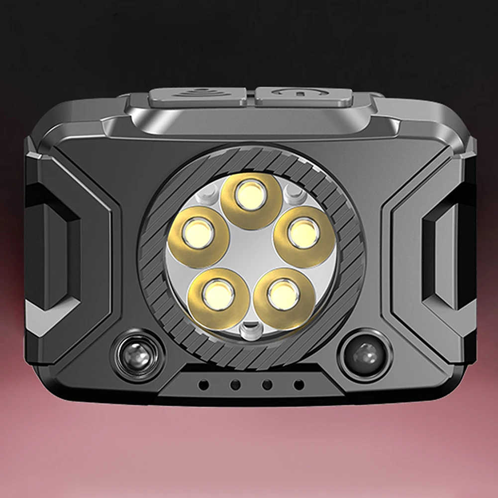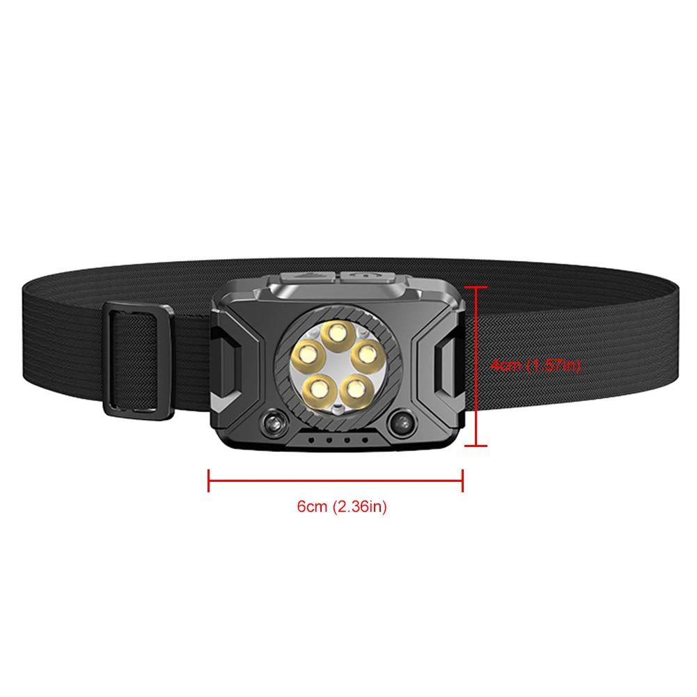 LED Camping Search Light Motion Sensor High Brightness Headlight 500mAh Powerful Headlight Torch Power Display for Night Fishing Specification: Origin: Mainland China Main Material: ABS Color: Black Size: About 6cm (2.36in)*4cm (1.57in)*3cm (1.18in) Net Weight: About 46g Bulb: 5*LED Gear: Strong Light-Weak Light-Strobe Lumen: 300LM Battery: Built-In 500mah Lithium Battery Charging Method: Type-C USB Charging Note: 1*Headlight