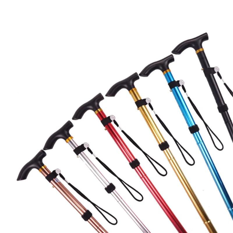 Multifunction Walking Stick Trekking Poles Telescopic Fold Crutches Hiking Stick Crutch Elderly Metal Stick Walking Cane Outdoor