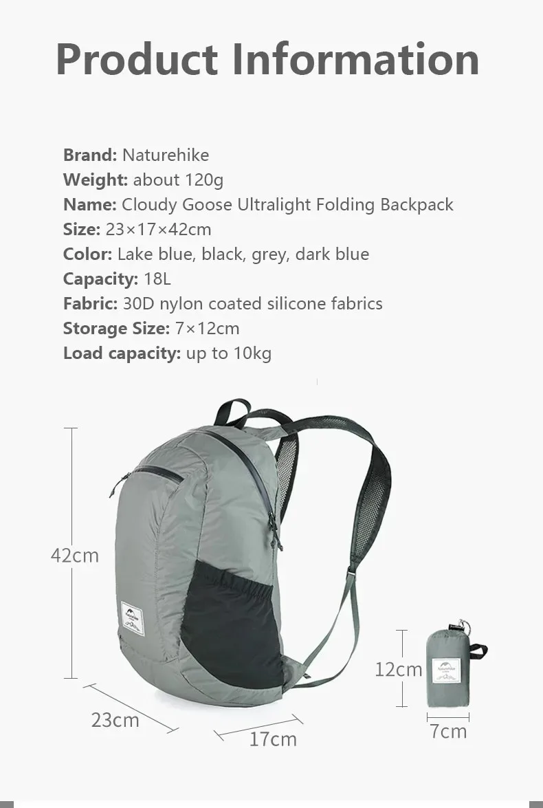 Naturehike 18L Silicone Folding Backpack Lightweight Portable Waterproof Bag Women Man Bag Outdoor Hiking Shoulder Skin Bags