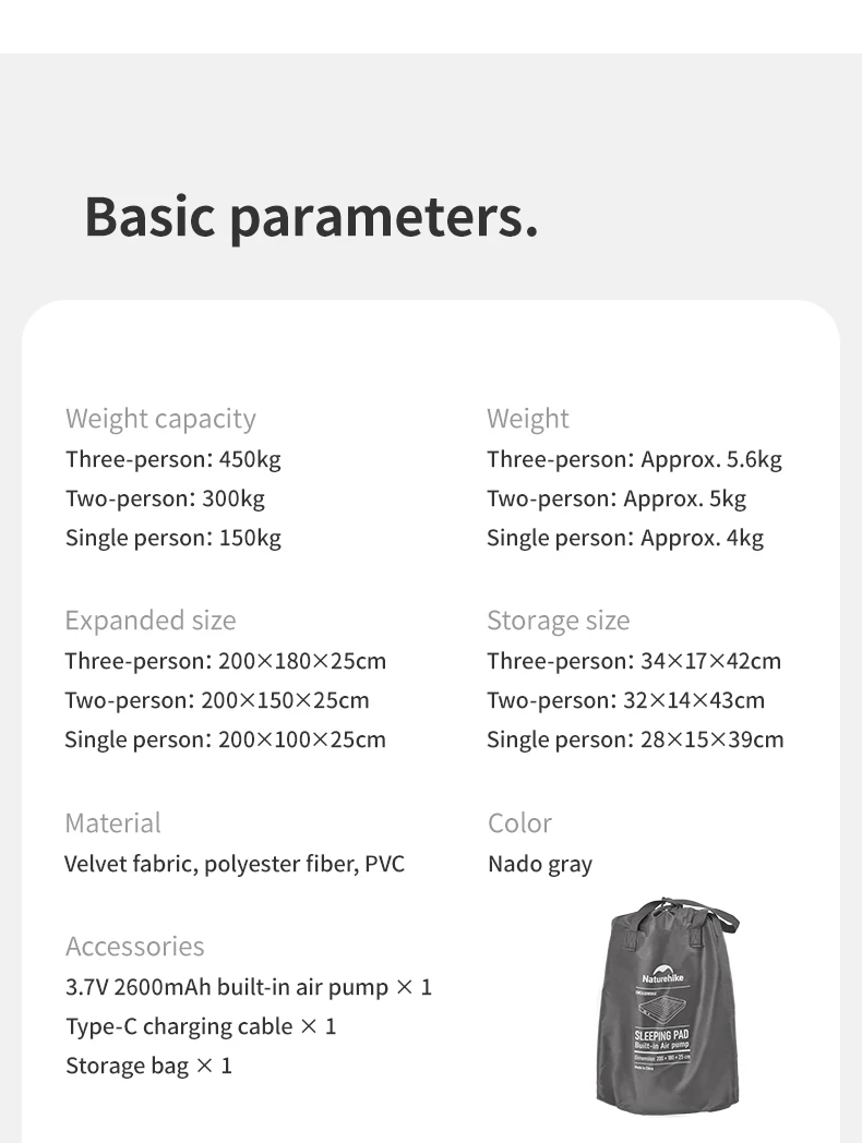 Naturehike Self Inflating Mattress Camping 2/3 Person Air Mat Built In Pump Sleeping Mat With Pillow Home Mattress