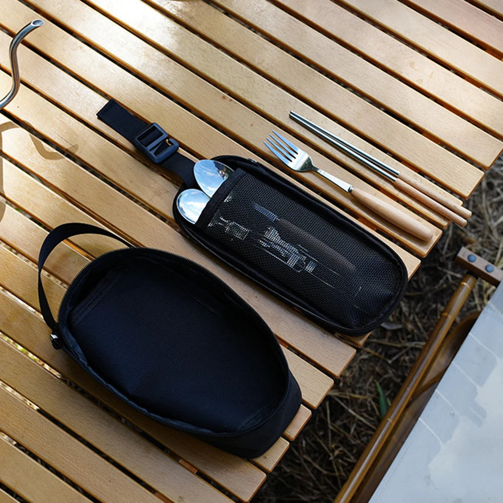 5. Multipurpose Storage: Beyond cutlery, this portable travel tableware pouch is ideal for organizing a multitude of camping essentials, such as lanterns, guy ropes, glasses, keys, earphones, and everyday carry (EDC) tools.
