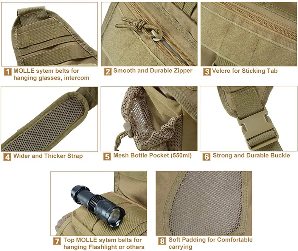 Outdoor Men Tactical Shoulder Bag Sling Chest Pack Military Molle Backpack Pouch Messenger Fishing EDC Sling Bag Utility Bag