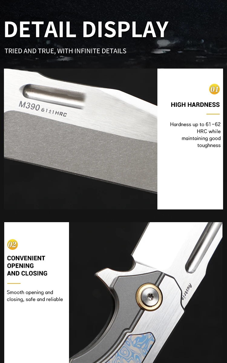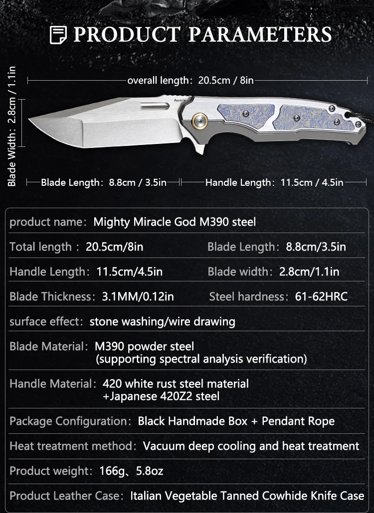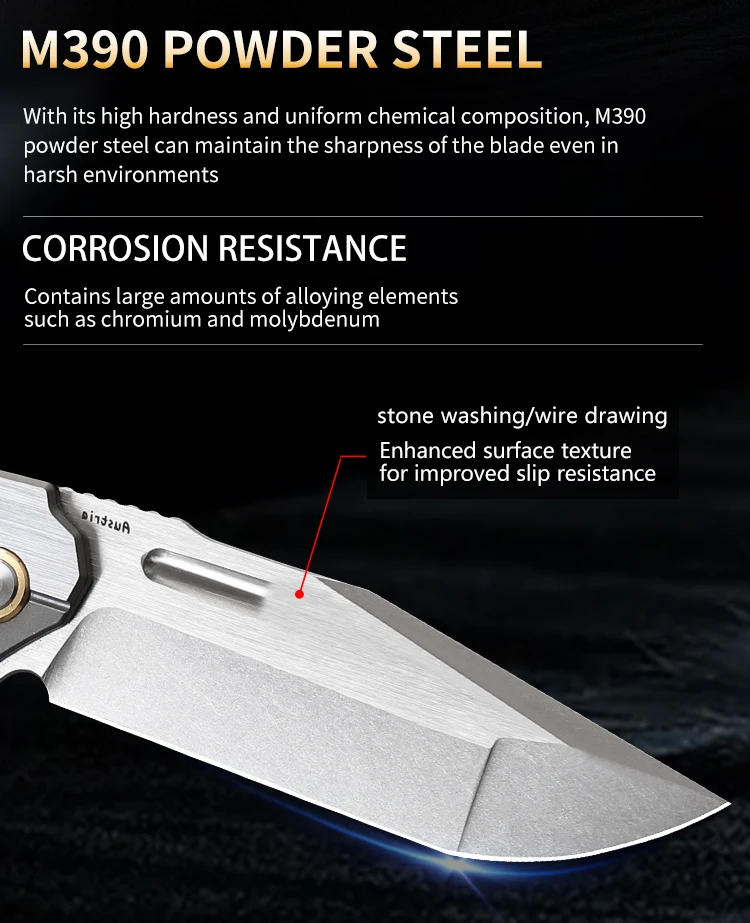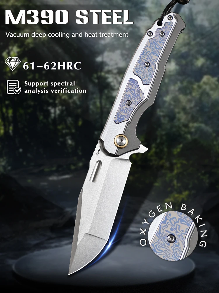 Blade material: M390 powder steel (support spectral analysis verification)