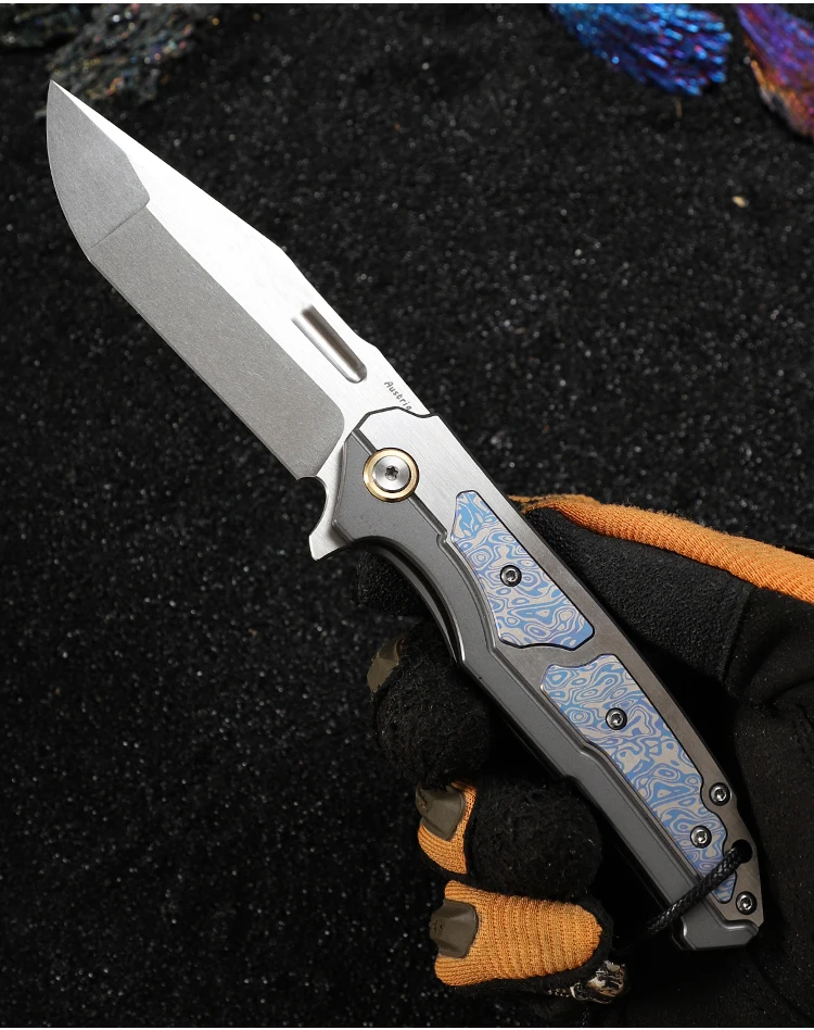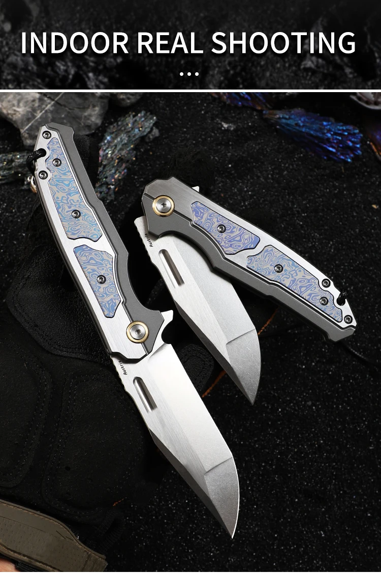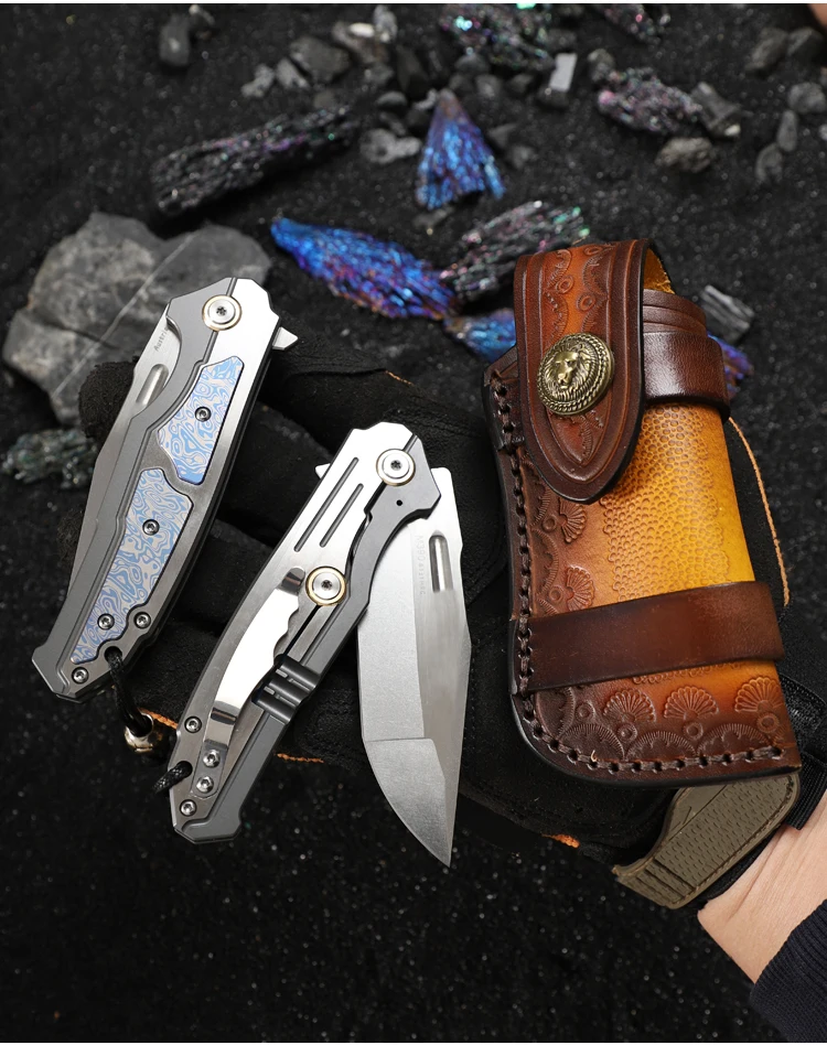 Outdoor Tactical Folding Knife, M390 Steel Pocket Knife with Leather Sheath, Men's Camping Hunting, Carrying Adventure Knife