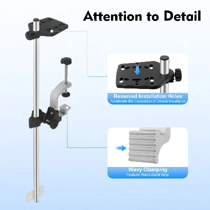 Crafted from top-tier materials with meticulous work, this portable transducer bracket delivers reliable long-term use. Designed with a large clamp opening and 360° rotation, it adapts to different kinds of ships and brings flexible usage. Add it to your setup, and you’ll fish with better efficiency, more convenience, and enhanced pleasure.