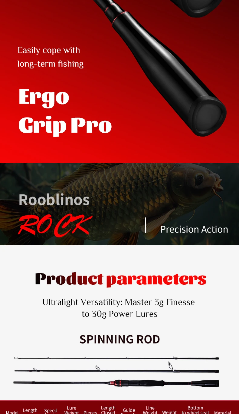 Rooblinos ROCK Lure Fishing Rod 1.98m 2.13m 3.0m Spinning Casting Freshwater Rod 3 Section Casting Fishing Rod Carbon Fiber