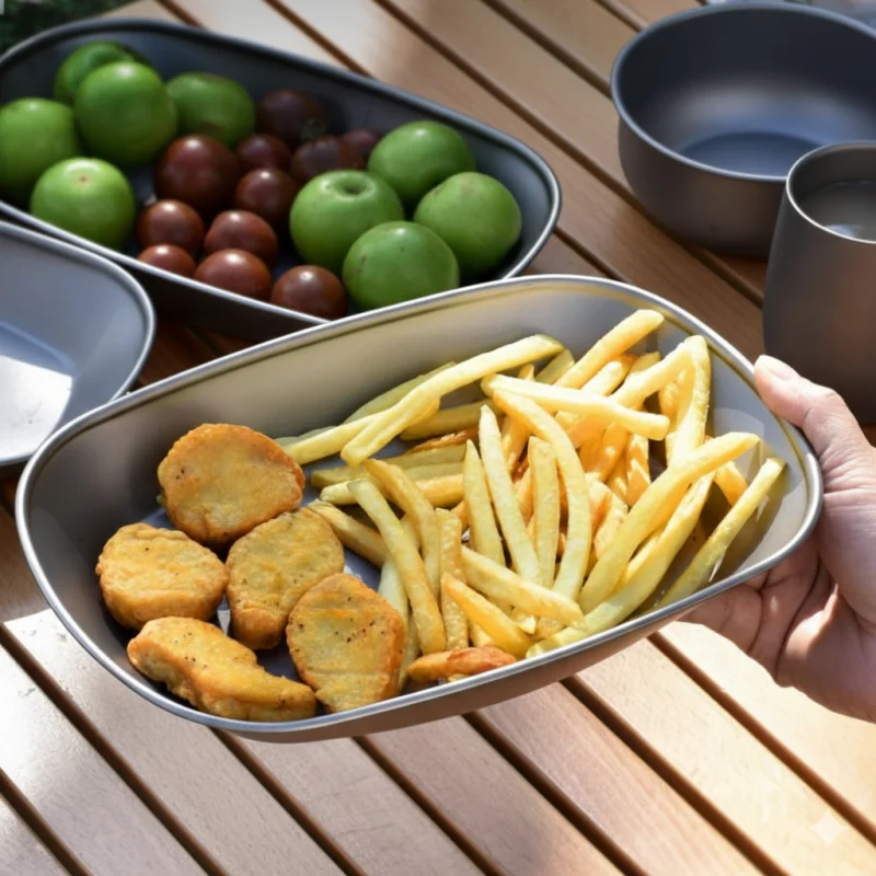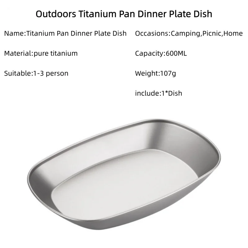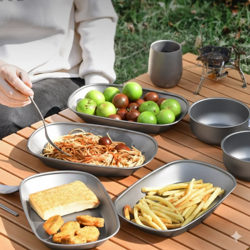 Titanium Camping Dinner Plate Ultralight Portable Plate for BBQ Fish Salad Fruit, Reusable Outdoor Tableware for Travel