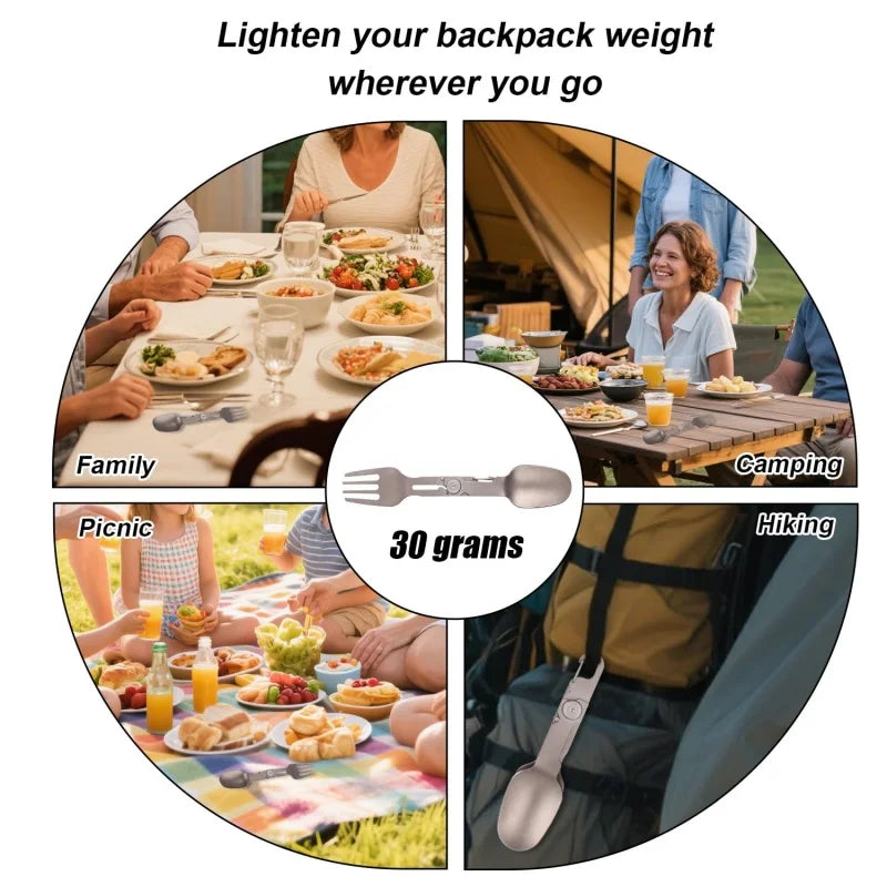 Titanium Folding Spork 2-in-1 Spoon Fork Combo for Camping Hiking Backpacking, Lightweight Portable Outdoor Utensil (1PC)