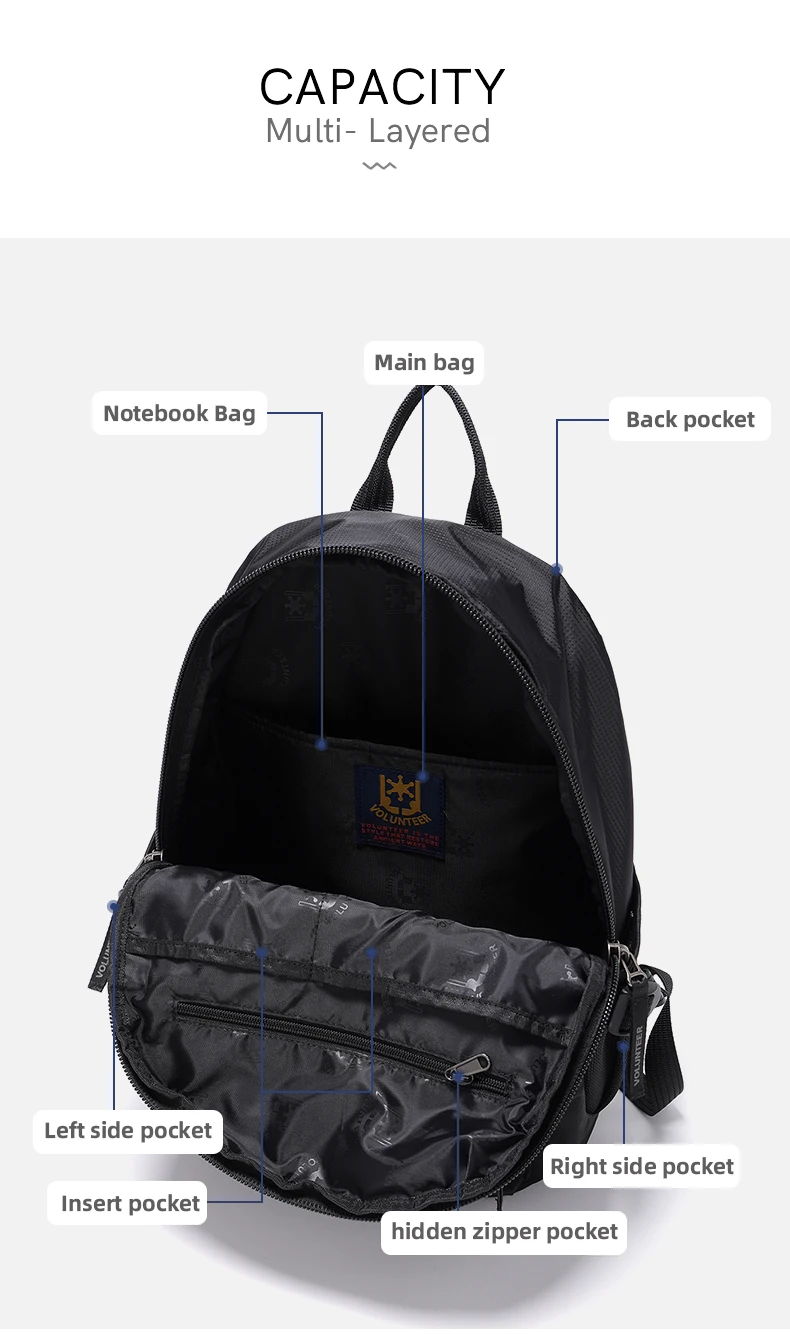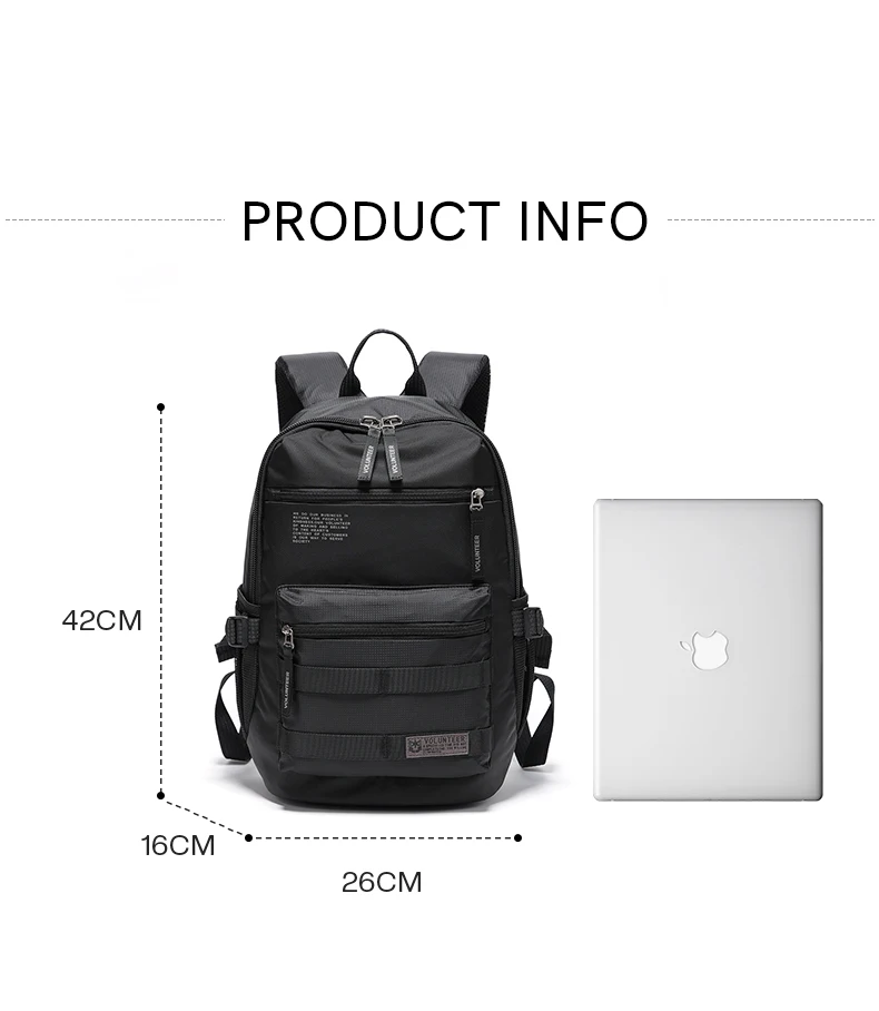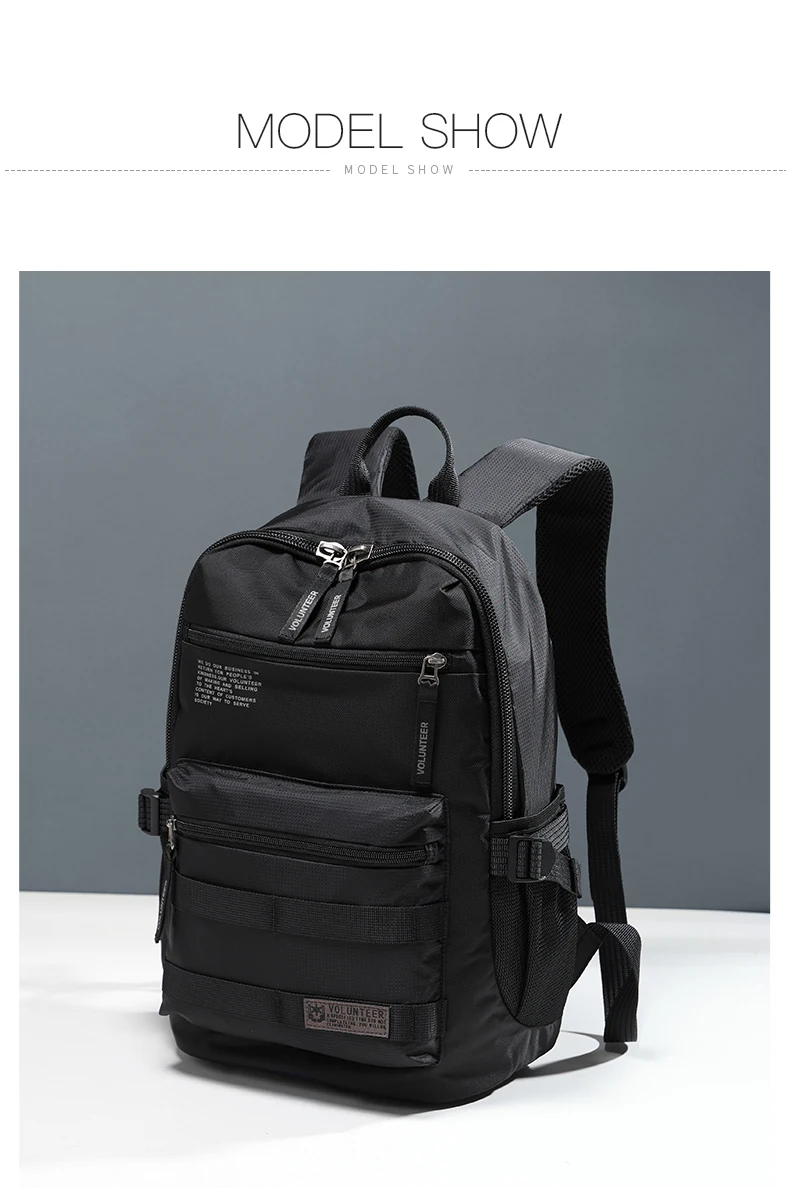 VOLUNTEER Men's Computer Waterproof Backpacks Oxford Cloth School Bags Fashion Casual Lightweight Travel Man Backpack 1829-03