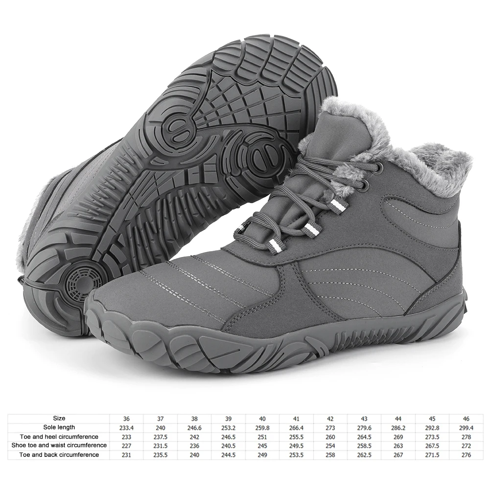 Winter Footwear Barefoot Boots Non-Slip Warm Hike Shoes Waterproof Warm Fur Lined for Women Men