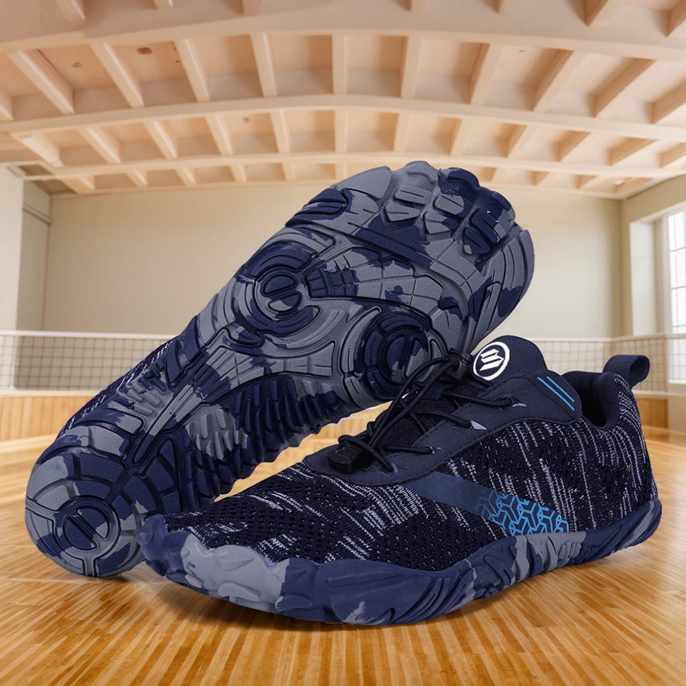 4. Five-Toe Sole Grip: The unique five-toe sole design ensures a strong grip on the ground, reducing the risk of slipping. This feature makes the gym fitness shoes ideal for adapting to various terrains, providing stability and confidence whether on rocky paths or sandy beaches.